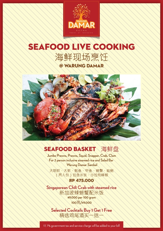 Warung Damar, our romantic Indonesian restaurant, offers a delicious selection of authentic home-cooked dishes from around the archipelago, together with some international dishes, a kids’ menu, and Indonesian desserts, accompanied by a comprehensive list of cocktails, spirits, wines, beers and soft drinks. Premium and, wherever possible, organic ingredients are utilized, sauces are freshly made and spices are ground by hand.