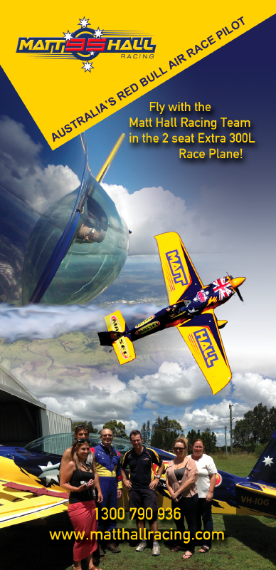 The highest intensity, thrill-a-minute aerobatic flight that money can buy with Australia’s number one aviator & Red Bull Air Race pilot, Matt Hall or one of his experienced team MHR pilots.