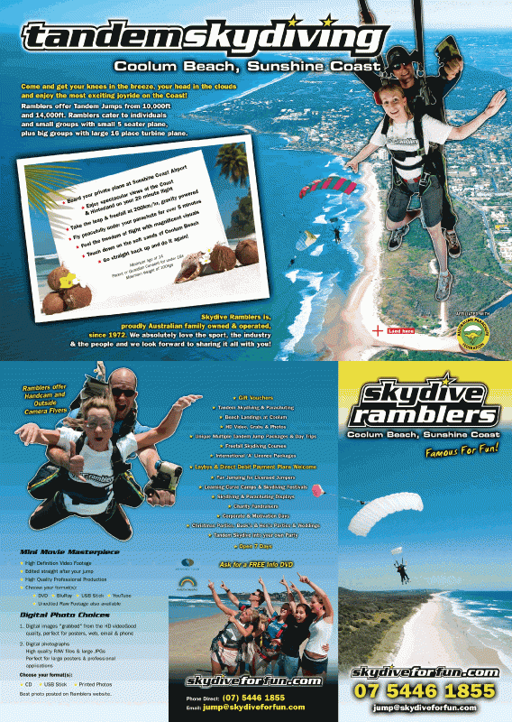 - Skydive Ramblers Sunshine Coast Sunshine Coast (0.0 miles) - You have found Australia's leading skydiving company - family owned & operated since 1972 - with...