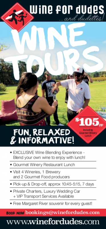 - Wine for Dudes Margaret River (0.0 miles) - Wine for Dudes (…& dudettes) believe that the celebration of wine is one that should be enjoyed by...
