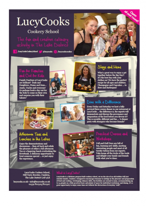 - LucyCooks Staveley (0.0 miles) - Welcome to Lucy Cooks - a fabulous Cookery School situated in Staveley Mill Yard, near Kendal in Cum...