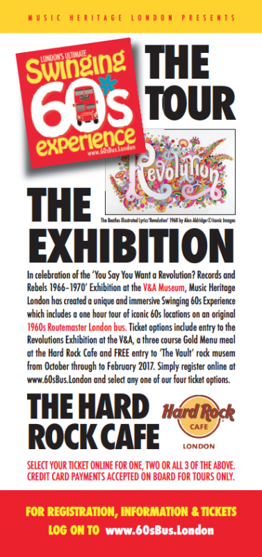 In celebration of the ‘You Say You Want a Revolution?’ exhibition at the V&A Museum, we’ve included an option to visit this major exhibition that explores the era defining significance and impact of the late 1960s, expressed through some of the greatest music and legendary performers of the 20th-century alongside fashion, film, design and political activism. It will uncover the finished and unfinished revolutions of the time that changed the way we live today.